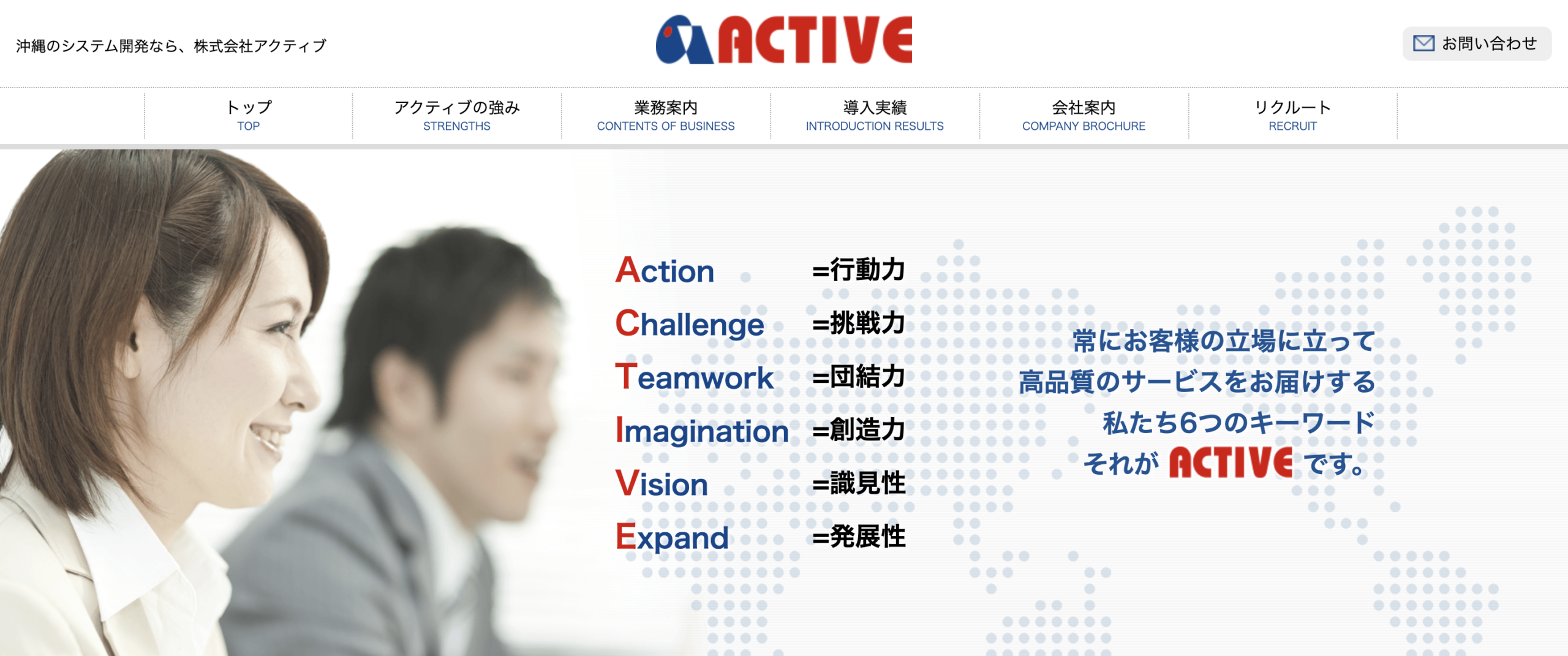 設立年 1993年 所在地 沖縄県浦添市西原2丁目4番1号 P’s SQUARE 3F 電話番号 098-987-8668 開発実績ページ 株式会社アクティブ開発実績 -